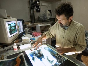 Далее изображения сканируются в процессе съемки. Происходит действие под названием сборка – накладка персонажей на фон. Позже полученное изображение раскрашивается, или по-другому это называется заливка. Кадры объединяются в видео.